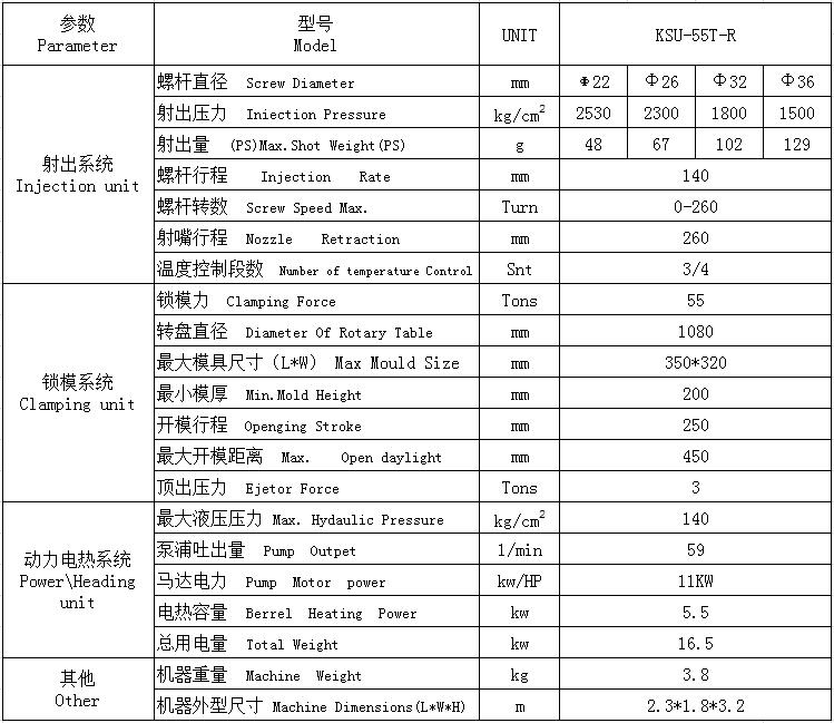 產品名稱:雙色圓盤注塑機 KSU-55T-R